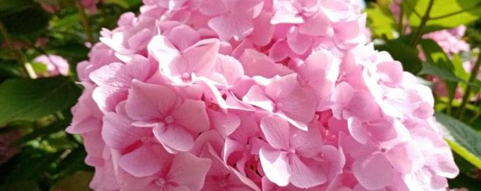 A hortênsia de folhas largas, aquela que floresce com gomos azuis e cor-de-rosa, coloca botões de flores nas extremidades dos rebentos do ano passado.